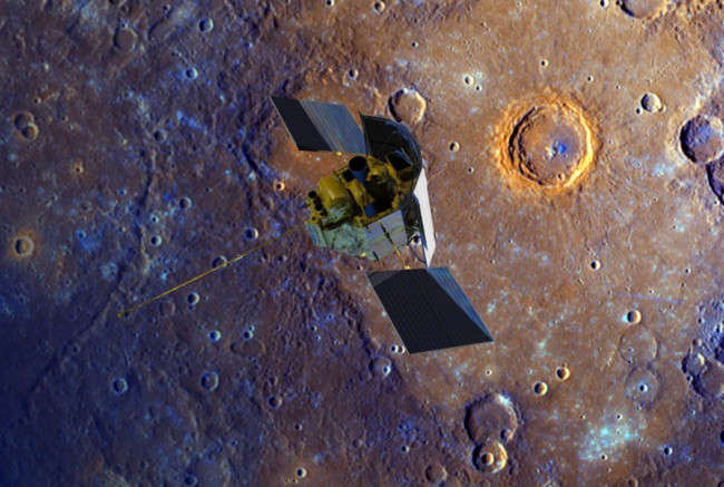 The MESSENGER spacecraft depicted flying over Mercury's surface. NASA/Johns Hopkins University Applied Physics Laboratory/Carnegie Institution of Washington