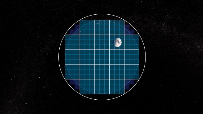 In one shot, the Large Synoptic Survey Telescope's 3.2-gigapixel camera will capture an area of the sky 40 times the size of the full moon (or almost 10 square degrees of sky). LSST's large mirror and large field of view work together to deliver more light from faint astronomical objects than any optical telescope in the world. Credit: SLAC National Accelerator Laboratory