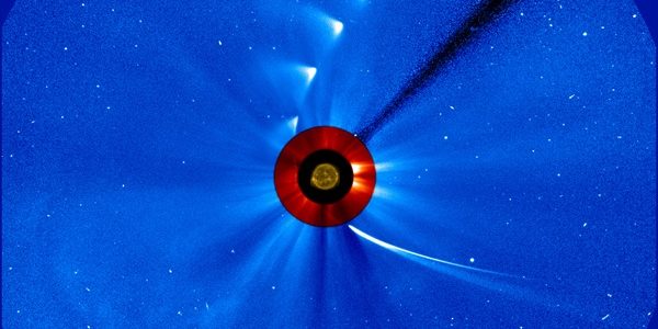 Comet ISON comes in from the bottom right and moves…